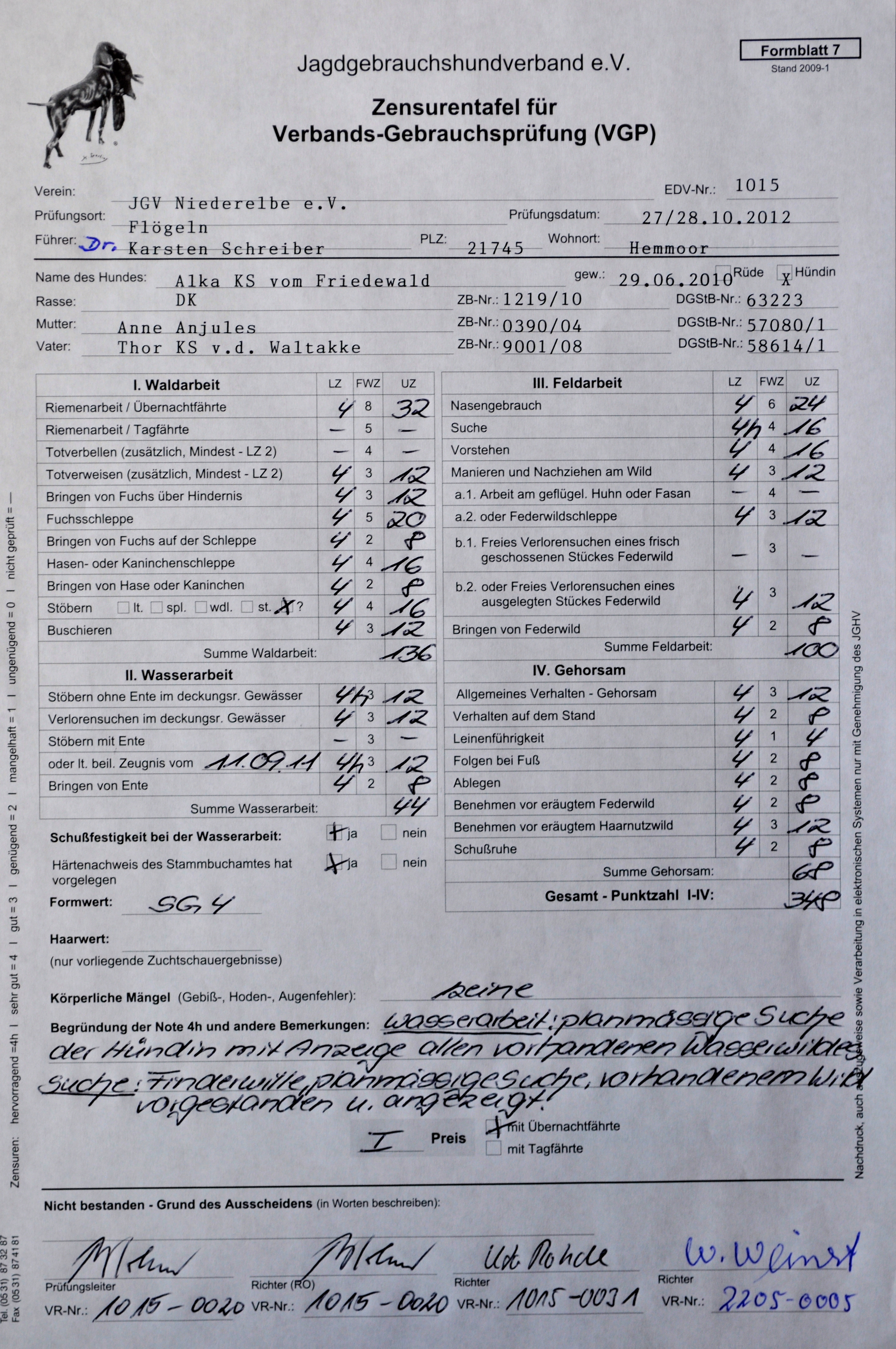 VGP1 / 348P, Bringselverweis, 4h Wasser, 4h Suche, Bericht, Suchensieger,