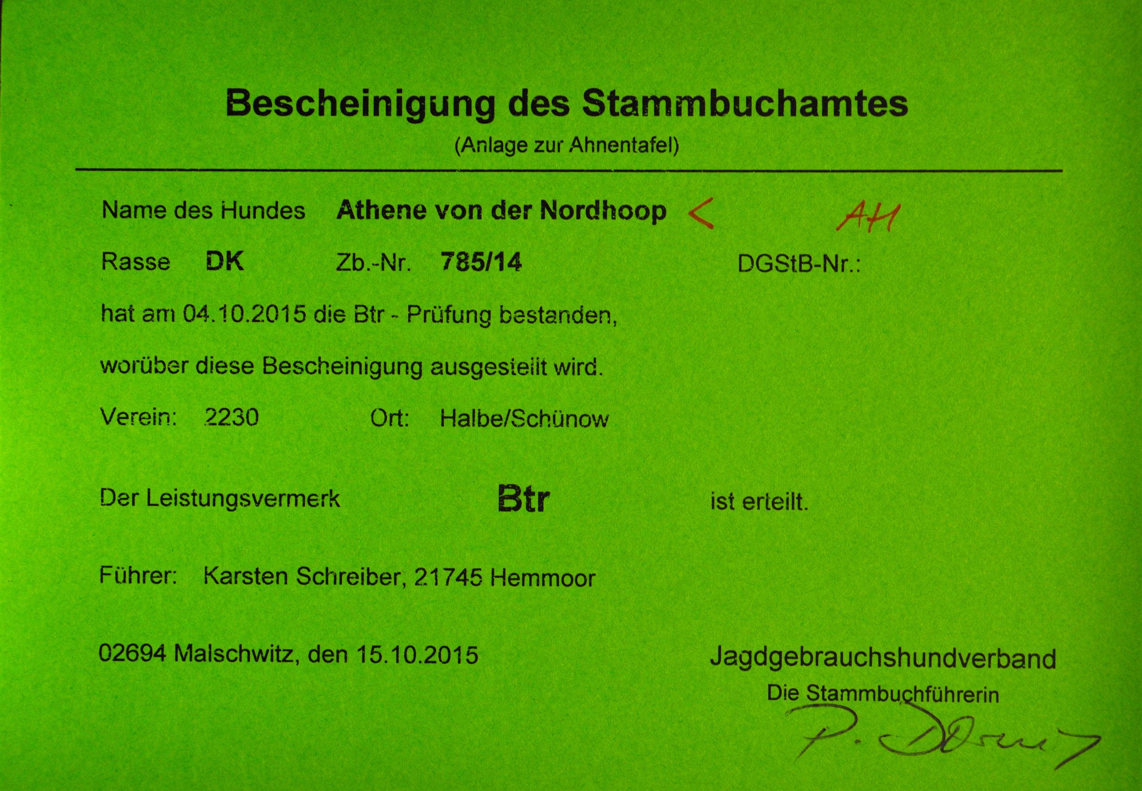 Bijke von der Nordhoop, aus Athene KS von der Nordhoop nach Bruno KS vom Sauwerder,
