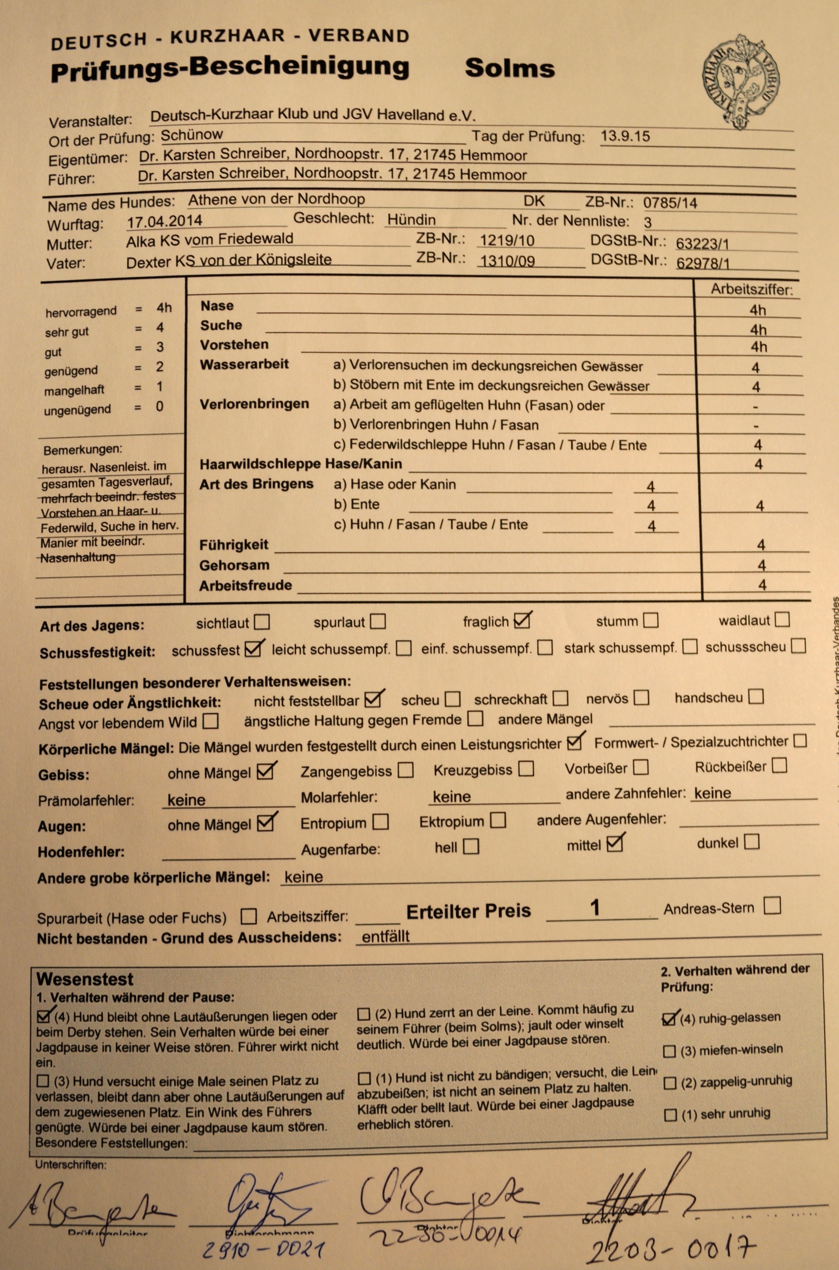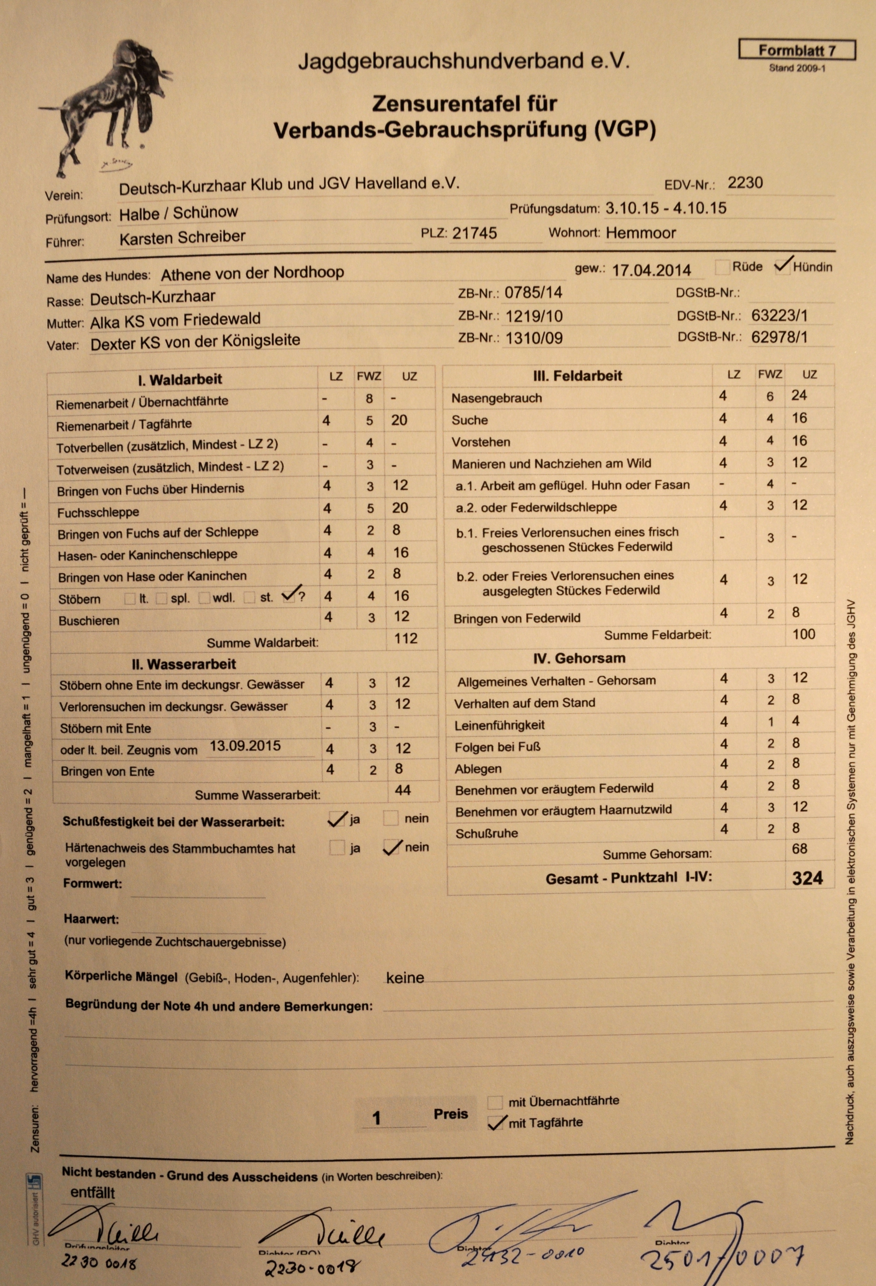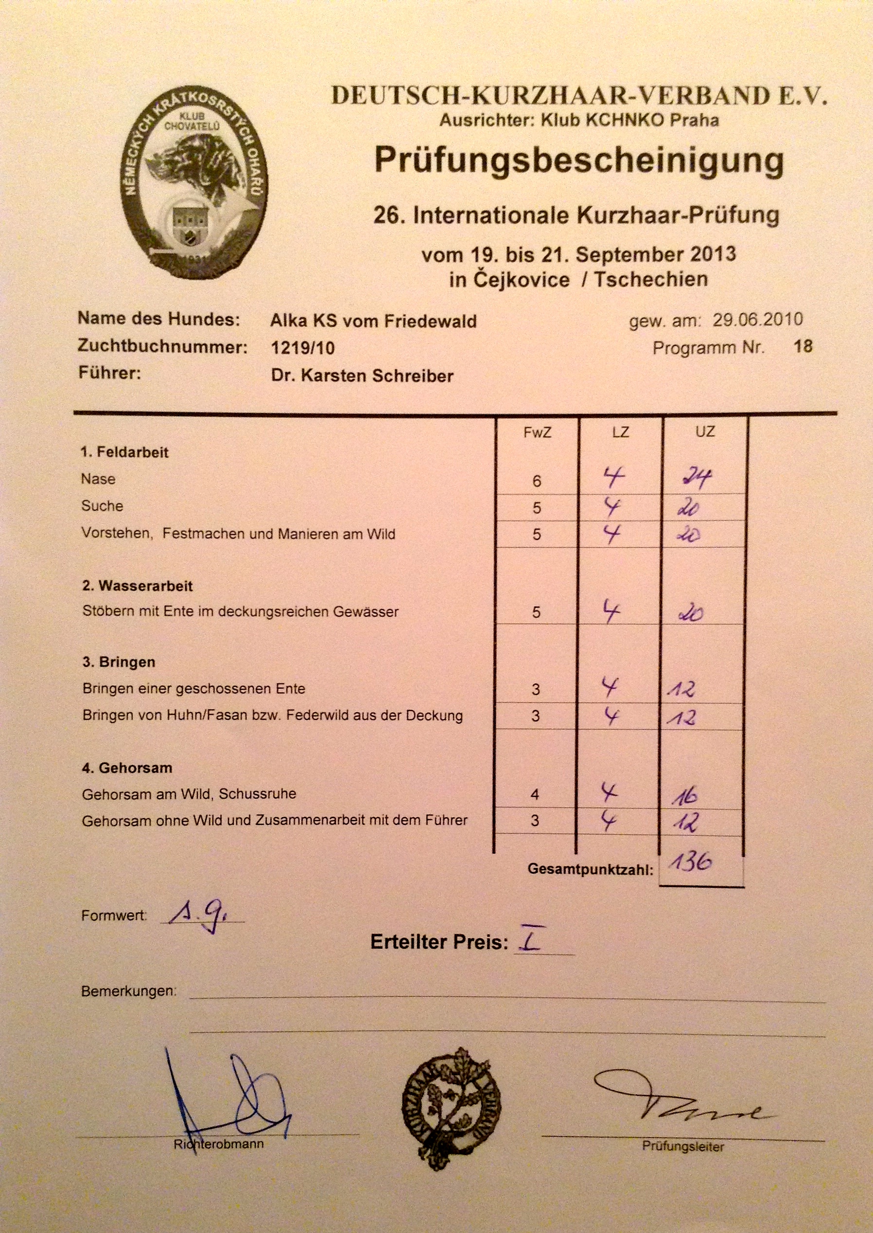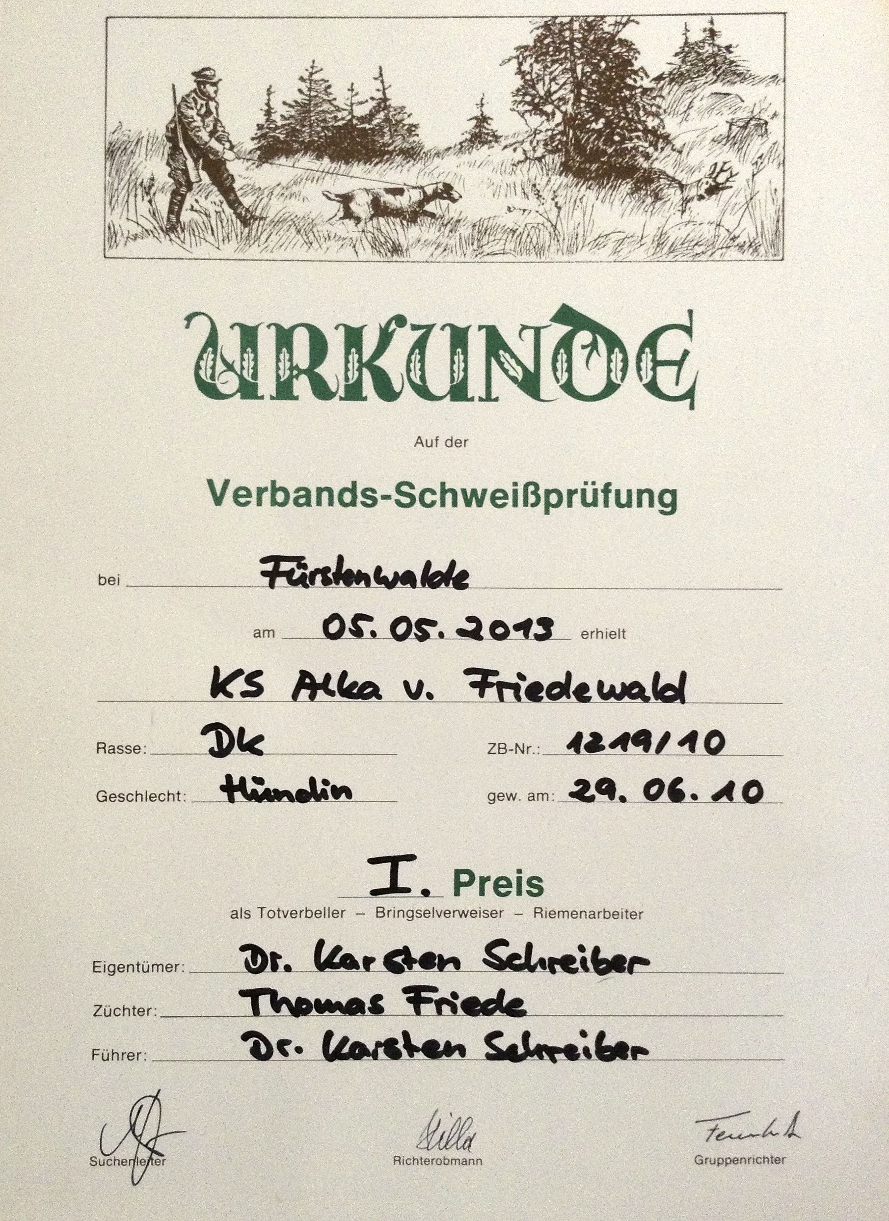 S1 (4h Suche, 4h Nase, 4h Vorstehen, Suchensieger),